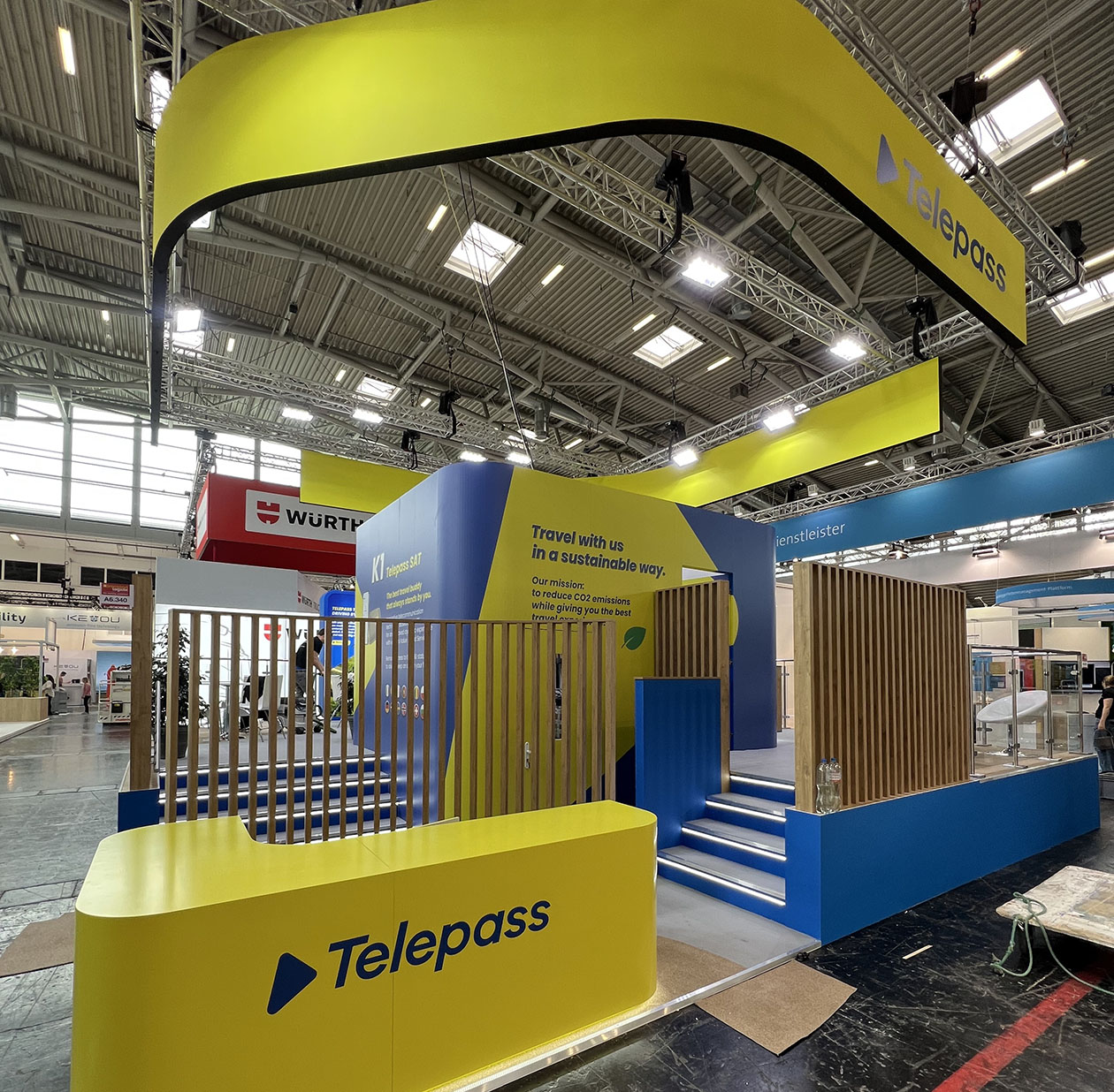 Telepass exhibition at Transport Logistics in Munich. Design and realization of a 110 sqm stand, on the occasion of the most important European fair in the logistics sector.